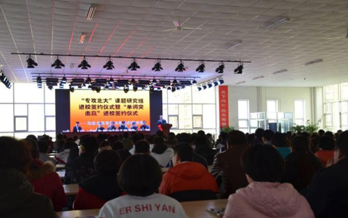 活动现场,北京大学《专攻北大》课题研究组总部周舰老师还生动幽默地向在座的家长和学生讲解了课程的原理及学习要领。最后,济南优智天成教育咨询有限公司总经理孙爽和王培震校长代表双方签署了课题进校捐赠协议。孙爽告诉记者,这是该公司公益捐赠的第一步,接下来他们将在济南及周边其他区县各选择一个学校进行捐赠,让学校和孩子们都能搭乘科技的东风,真正快速有效的提高英语学习成绩。