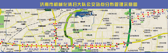大众网济南6月24日讯(记者 王磊 通讯员 宋振飞 邓慧娟)今天,记者从济南市机扫大队获悉,该队为提升公交站点保洁质量,将全队保洁的73个公交站点绘制成地图,实施动态管理。该地图将极大提高公交站点的保洁质量,为市民提供整洁的侯车环境。