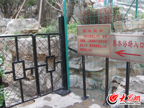 泉水浴场门口的“温馨提示”牌