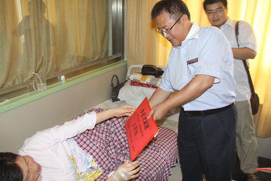 步长制药生产副总裁刘鲁湘带去董事长给予的慰问金及山东五公司慰问金。