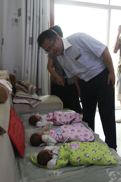 刘总一行,此次为李雪和贾凤祥夫妇带去赵步长教授、赵涛董事长、赵超总裁步长大家庭“步长宝宝”四胞胎慰问金4万元,山东步长五公司慰问金2万元。李雪和贾凤祥所在公司以文件的形式决定从2011年7月份起每人每月增加1000元,累计14.4万元,作为生活补贴,直到孩子6周岁,以资助“步长宝宝”四胞胎健康成长。这些远没有结束,来自山东步长各公司、步长总部机关、步长医院、商贸学院等分支机构的爱心问候才刚刚开始,爱心传递的火炬在步长熊熊燃起,生生不息……