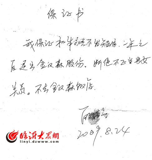 临沂大众网8月12日讯 “我保证和朱xx不发短信,一年之后退出金汉森股份,断绝不正当男女关系。不去金汉森饭店”。昨天,一个标题为《沂水公务员出轨!有木有人管!有图有真相!求围观!》的帖子出现在大众网临沂论坛,帖子中详细叙述了当事人的身份及其与“第三者”的关系,帖子图文并茂,一经发布引发了网友们的广泛关注。