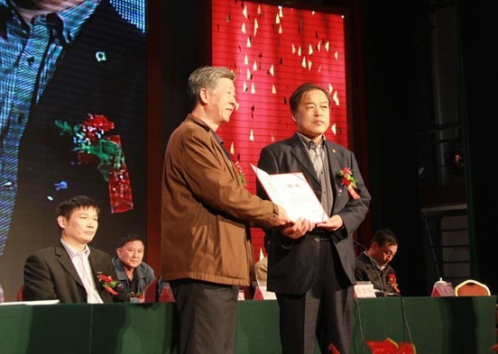 中国书画院山东分院院长王金水(右)接受院长聘书。