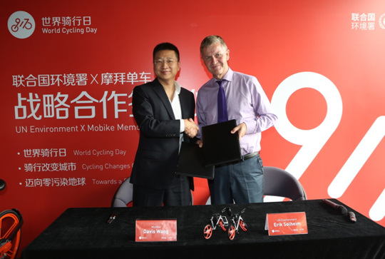 根据谅解备忘录,摩拜单车将与联合国环境署合作,倡议发起“世界骑行日”。这是全球范围内首个以骑行为主题的节日,鼓励用户骑车出行、倡导绿色交通,为低碳城市、绿色城市、健康城市和一个没有污染的地球添砖加瓦。