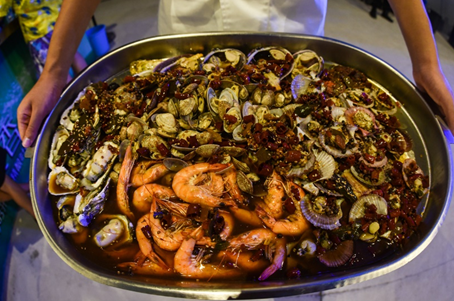 美酒少不了美食相伴,在青啤大篷现场有上百种中西结合的美味任意挑选,不仅有烧烤海鲜等青岛特色美食,还有德国猪肘、香肠等品质德餐,带来舌尖上的世界级享受;现场还新增明档设计,制作过程全程可观,让顾客吃得放心。