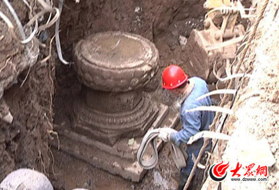记者目击济南县西巷经幢底座挖掘