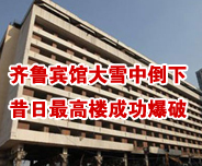 齐鲁宾馆大雪中倒下 昔日最高楼成功爆破