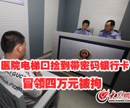 医院电梯口捡到带密码银行卡 冒领四万元被拘