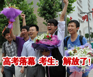 鲜花簇拥迎高考落幕 考生齐呼:该放松了!