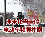 冰未化雪未停 电动车频频摔倒