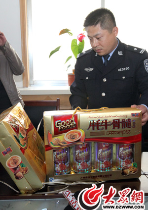 “简单·爱”在论坛上说:清明假期结束,与朋友坐火车从家中返校,出济南火车站后,去附近一小商店买饮料。自己买了东西转身向店外走去,刚迈过收费的桌子踏到门口时,突然身后‘啪’的传来东西落地声。随后店主便开始叫嚷:“哎!你走路不会小心点呀,把我东西弄掉了,看看怎么赔……”转身望去,一盒玻璃瓶装的牦牛壮骨粉,内装的四瓶补品瓶身已摔得粉碎。不一会,二楼下来一名男子,上来就喊:“你干嘛?打了东西要耍赖?”