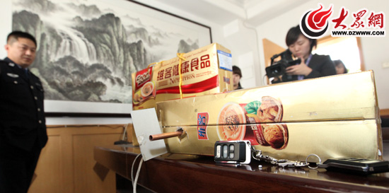 大众网济南4月11日讯(记者 曹亮 赵洪栋)近日,一条发在大众论坛的题为《济南火车站惨遭碰瓷敲诈!大家注意注意!》的帖子引起了济南天桥警方的注意。今天上午,经过天桥分局纬北路派出所民警的连续蹲守,终于将以遥控“碰瓷”敲诈外地旅客的两名犯罪嫌疑人抓获,并查获两台用汽车中控锁精心改装的礼品盒“碰瓷”装置。