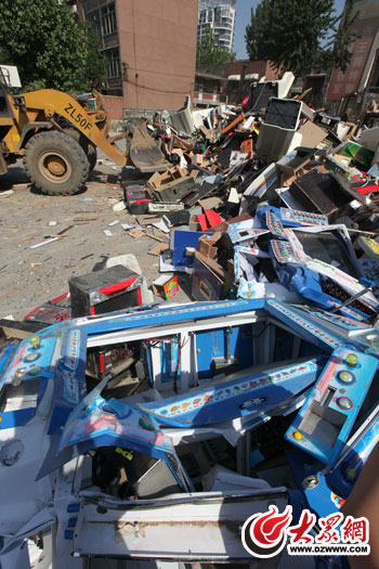 400余台赌博游戏机被全部销毁。(曹亮 摄)