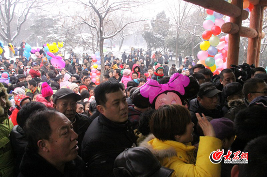 上午10点,当大众网记者来到济南动物园大熊猫新馆门口的时候,虽然大门还没打开,但这里已经被希望一睹“国宝”风采的市民们挤了个水泄不通。在这些市民中,不少都是带着刚刚放寒假的孩子一起来的。