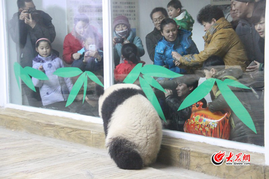 为了能够在第一时间看到大熊猫,家住历城唐冶片区的孟先生一家三口早早的就已经等在了熊猫馆的门口。孟先生告诉大众网记者,他们一家人早上7点就出门,赶了20多公里路才抵达目的地。