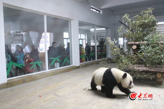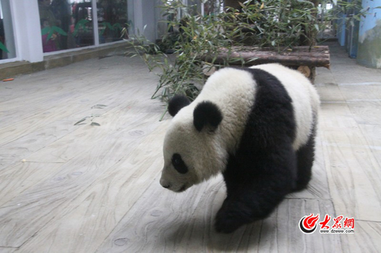 大熊猫适应了济南新家。