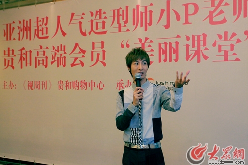 大众网济南9月29日讯 今天下午,备受瞩目的亚洲超人气造型师、时尚美容达人小P老师应邀来到泉城济南,为贵和购物中心高端会员打造了一堂精彩的“美丽课堂”时尚盛宴。为众多爱美人士解读如何制造最美丽的妆容,分享秋季护肤和扮靓的独家心得。