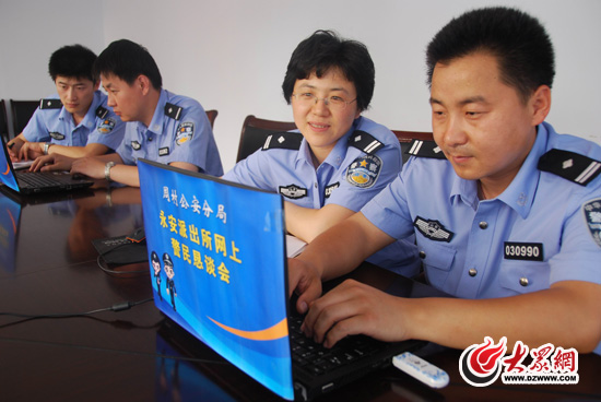 6月10日,淄博市公安局周村分局永安派出所举办了全区首个网上警民恳谈会。会前,民警在辖区各处张贴了邀请群众参加网上警民恳谈会公告。恳谈会当日,有10名网民在新浪微博与派出所民警互动,提出了公安工作方方面面的意见建议和法律法规咨询等54条.(李琳)