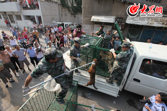 大众网济南6月21日快讯(记者 曹亮 赵洪栋 见习记者 李润杰)今天上午,济南市公安局治安支队养犬管理稽查队、天桥分局治安大队稽查队、堤口路派出所民警联合行动,对济南市公安局转发的举报线索进行查处。在天桥区胜利庄某小区,违规养犬两年多的“钉子户”被查处,稽查队耗用两个多小时的时间才将21只无证犬只全部收缴,辖区周围市民拍手叫好。稍后大众网记者将带来详细报道。