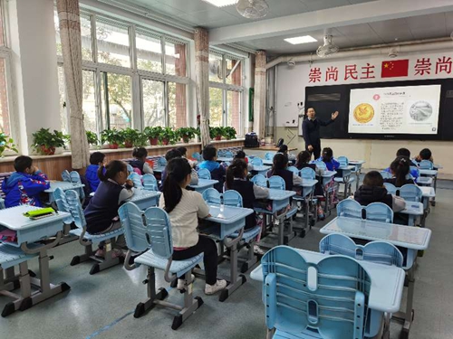 11月4日下午,山东师范大学附属小学一年级五班举办了首期家长讲坛。在班主任老师的精心安排下,讲坛聚焦金融文化,由从事金融新闻报道的张頔(张芮驰爸爸)主讲,分为纸币上的地理课、纪念币上的历史课、银行里的数学课三个环节,为同学们开启了一场“人民币之旅”。