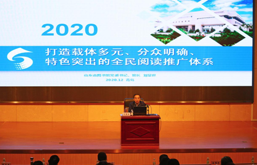 山东省图书馆馆长刘显世做“打造载体多元、分众明确、特色突出的全民阅读推广体系”主题讲座,并与现场人员进行交流。