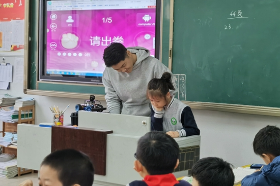 “重视小学阶段的AI教育,我们教给队员的不仅仅是具体的应用算法,更应该是打开未来人工智能这扇科技之门的成功钥匙。让队员更多的去接触参与,通过学习、认识、分析、解决现实问题等过程,培养队员对于AI技术的兴趣,形成一种亲近感,从而提升综合素质、发展核心素养。”三(一)中队班主任张旭老师在接受采访时谈到。