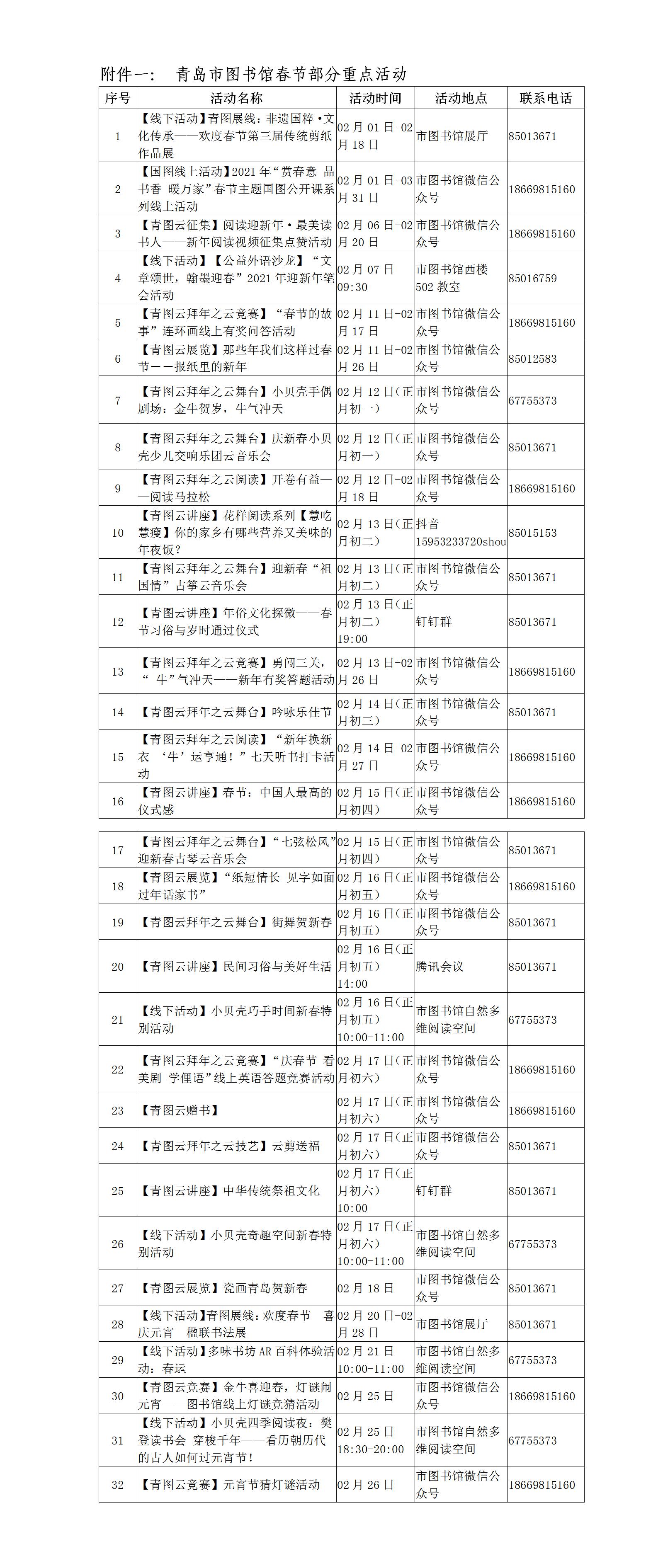 在春节来临之际,青岛各区市公共图书馆与青岛市图书馆同步推出了春节主题的系列公益文化活动,市民朋友和留青过年的朋友们从小年到元宵节期间,既可以在各图书馆享受安静的读书时光,也可以通过线上线下多种方式参加图书馆组织的各类好玩喜庆的公益文化活动。喜欢阅读并希望度过一个充满书香假期的朋友们,一定要关注各图书馆的活动哦!