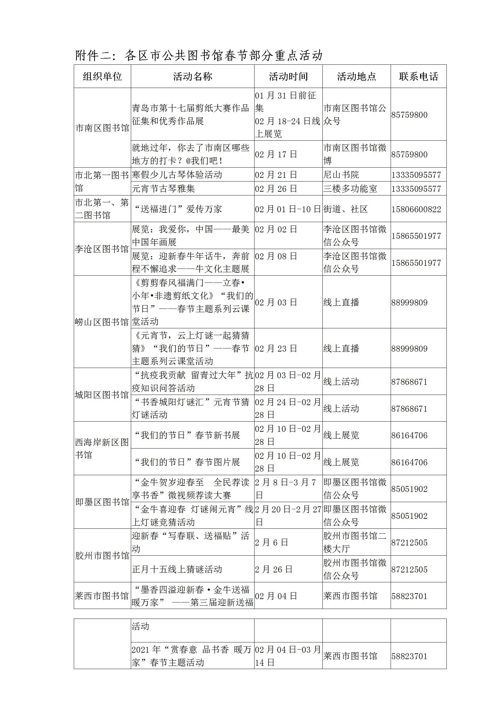 更多活动详情,请关注市图书馆微信公众号(QingdaoLib)以及各区市图书馆网站、微信公众号发布的具体活动通知。