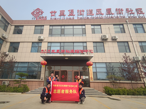凤庭(奎文区仉家棚户区改造)工程志愿者服务队成立于2020年2月10日。志愿者队伍共有7名成员,其中党员4名。在抗击新冠肺炎疫情期间,该志愿者服务队“诞生”,他们积极组织疫情信息登记、监测体温、新增外来人员排查,勇挑央企的责任重担。