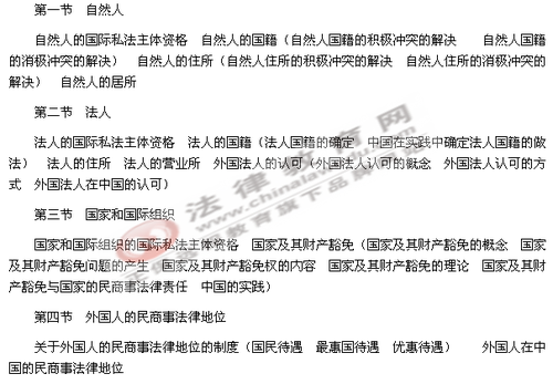 了解:自然人、法人、国家、国际组织的国际私法主体资格,外国人的民商事法律地位。