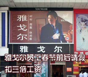 雅戈尔集团的子公司宁波雅戈尔日中纺织印染有限公司日前发出通知称,工人春节前后请假将扣三倍工资。这被称为“史上最雷人放假通知”。为了留住员工,一些服装企业为员工提供往返机票、提高加班工资和奖励出国游等福利。