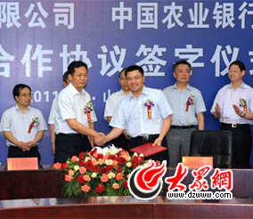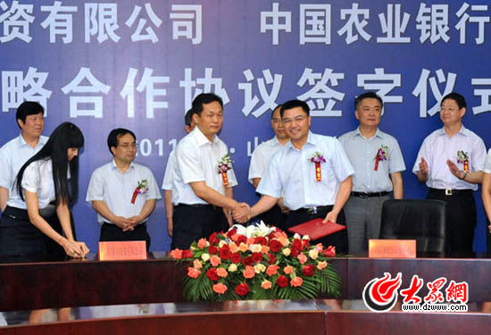 山东省金融办副主任郭永利、人民银行济南分行副行长肖龙沧、山东银监局副局长王朝弟应邀出席签字仪式。仪式上,农行山东省分行行长陈军、山东海洋投资有限公司董事长包剑英先后致辞,农行山东省分行副行长张晓男、山东海洋投资有限公司董事长袭建兵副总经理分别代表双方签署《战略合作协议》。