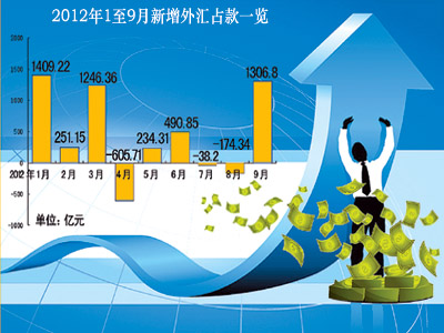 央行10月19日公布的数据显示,9月份金融机构外汇占款新增1306.8亿元,结束了此前连续两个月负增长的态势。分析人士认为,当月贸易顺差、人民币重回升势使企业结汇行为发生变化以及美国QE3态势下国际资金回流我国市场都是导致9月份外汇占款增加的原因。受这些因素影响,预计未来两个月内,外汇占款增加态势有望延续,市场流动性状况将进一步得到改善。