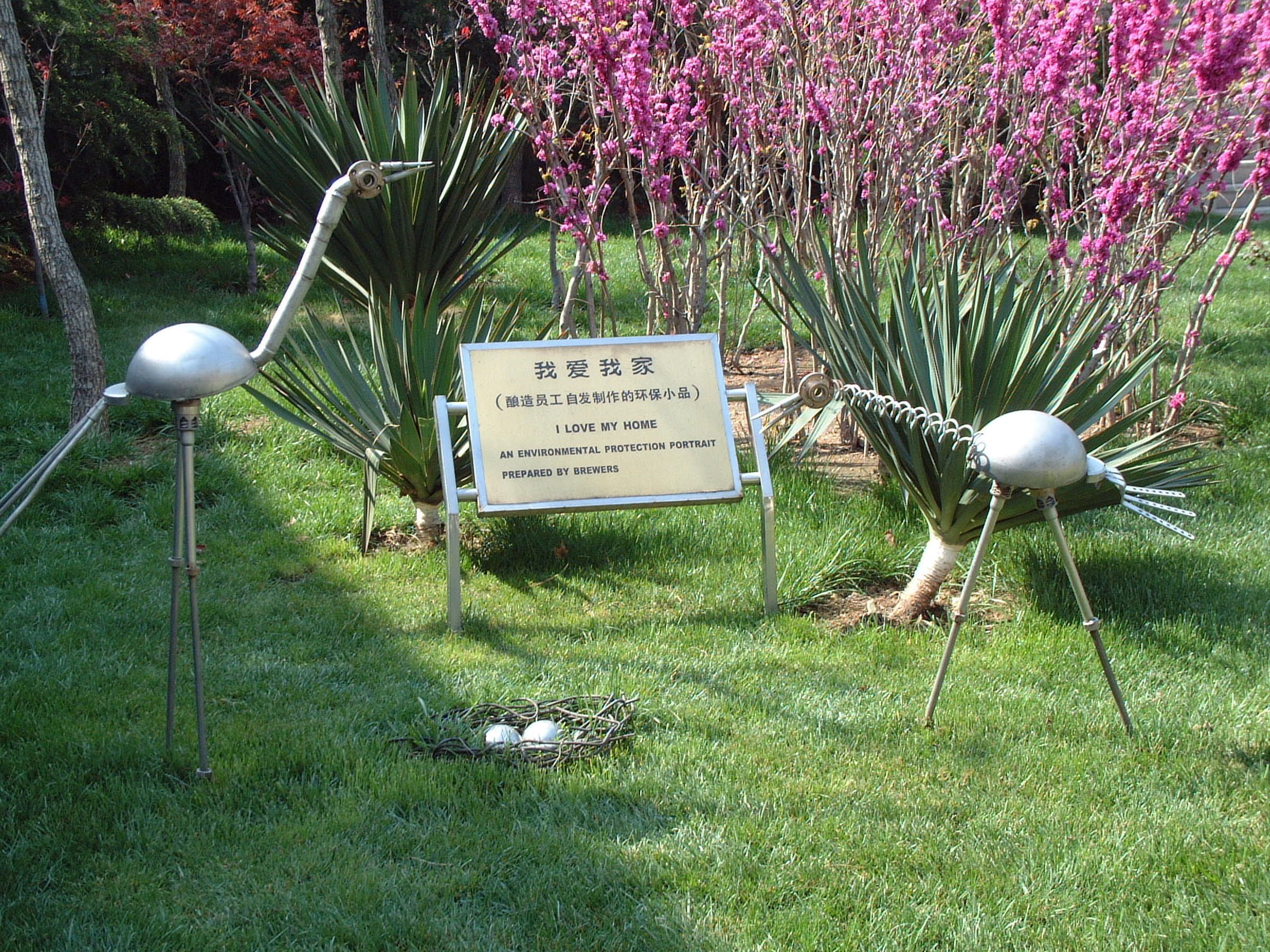 青岛啤酒员工用废弃零件制作的环保小品