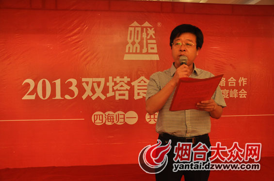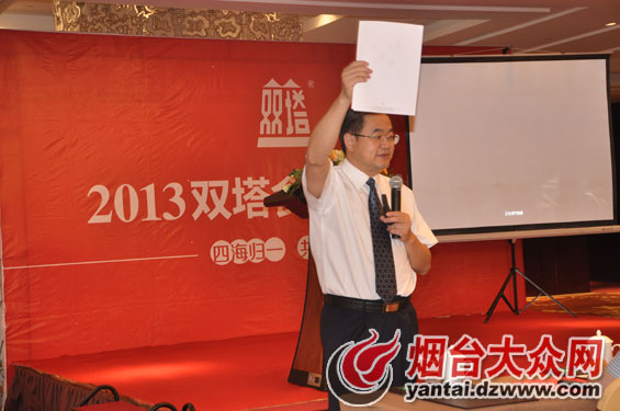 大众网烟台7月26日讯 (通讯员 邵安艺 记者 张雪松)7月26日,烟台双塔食品股份有限公司隆重召开2013年全国战略合作经销商年度峰会,经销商培训是此次活动的一大亮点,将公司战略与经销商需求进行对接,打造融洽的鱼水关系。据悉,此次双塔食品经销商培训会以提高经销商的营销理念与实战技术为目标,对经销商的销售能力进行全方位提升和演练塑造,将进一步加快双塔食品的市场开拓步伐。