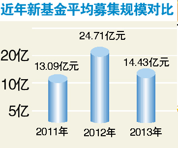 2014年开年,基金整体的发行情况有所回暖。据同花顺iFinD数据,截至1月31日,今年以来,新成立基金共募资超过314亿元,同时,单只基金的平均募资规模为24.64亿元,已超过去年全年的平均水平。据粗略统计,2013、2012、2011年全年新基金平均募集规模分别为14.43亿元、24.71亿元和13.09亿元。