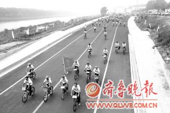 今年8月8日在新建成的徒骇河滨河大道上举行环城骑行活动。(资料片) 本报记者 邹俊美 摄