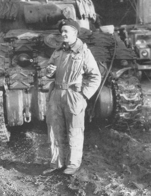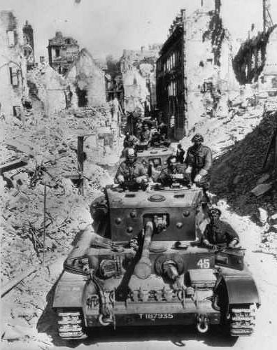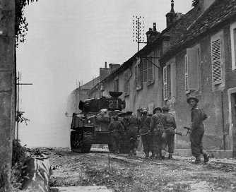 一群美国大兵在一辆被击毁的德军坦克前展示着他们缴获的纳粹万字旗。资料显示他们当时在Chambois(尚布瓦),德军位于法莱斯缺口的最后一个据点,时间是8月20日