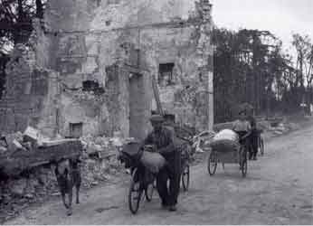 从法莱斯撤出的法国平民;他们的家园也许再过几个钟头就荡然无存了