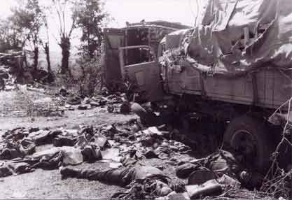 在Chambois(尚布瓦),德军也遭到盟军的猛烈攻击;攻击后尸横遍野,车辆零件散落一地