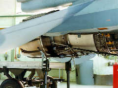 拆除蒙皮的F-16战斗机尾部
