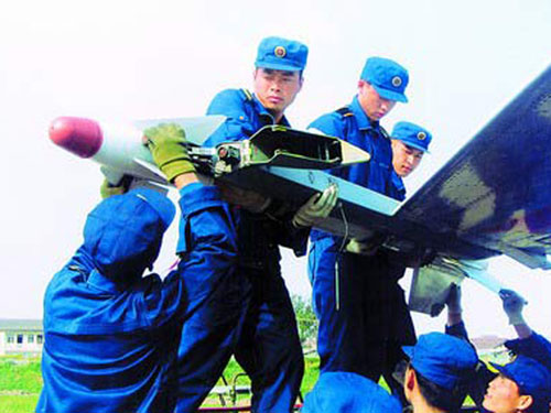 “海空雄鹰团”的机务官兵为战机挂装空对空导弹 [资料]