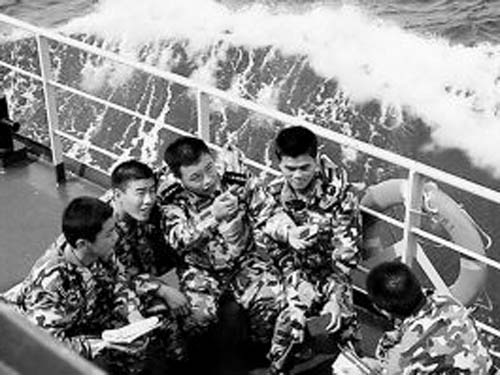 采访中,随船的两名南沙守备战士的对话更让记者感慨万分。一名老兵问:“你说,咱中国的形状像什么?”新兵不假思索地回答:“像公鸡。”老兵一笑:“我看还像火炬!”“火炬?”新战士接过老兵拿来的地图,横看竖看也看不出门道。老兵说:“你从南沙这个角度看进去,像不像火炬?”新兵仔细一看:“啊,真的,是火炬!”
