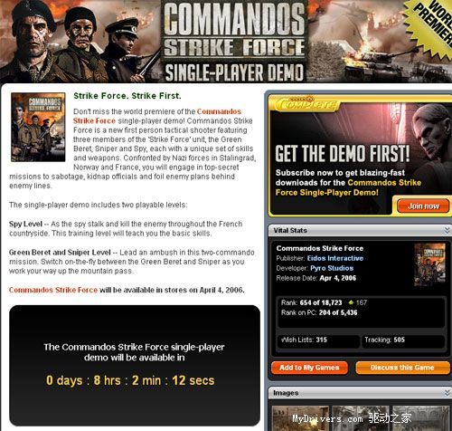 《盟军敢死队:打击力量(COMMANDOS STRIKE FORCE)》同系列作品来对比的话,绝对属于一款另类。这款作品大胆使用了FPS的第一人称射击模式,依旧由EIDOS公司盟军敢死队系列原班人马Pyro Studio制作。据悉,该作使用了EA公司的3D游戏开发技术工具软件RenderWare生成,画面效果非常出色。