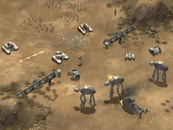 一座小型的游戏产业区坐落在拉斯维加斯的公路沿线,这里曾经是历史上最有影响力的游戏开发团队的家。westwood制作室基于知名的电影改编的游戏《沙丘2》奠定了即时战略游戏的基础,同时他们缔造了非常成功的命令与征服系列。他们曾经拥有150名艺术师、标准设计师和制作人,现在这些人大都分散在EA的其他本地公司中,当然还有一些人选择了留下,沿着这条街道向右转,一座外观很不起眼的办公室出现在我们面前,这里就是Petroglyph公司,一个拥有20名成员新成立的游戏工作室。他们中的绝大部分人都来自于westwood,这些程序员和设计师都曾经参与创造了今天为我们耳熟能详的经典游戏作品,而现在他们正在制作一部新的即时战略游戏,他们期望在保留传统经典要素,比如采集资源、建造基地和训练部队的同时,进一步将革新的要素融入这部作品:《星球大战:帝国战争》