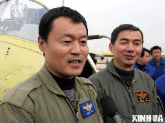 L15新型高级教练机前舱首席试飞员是中国试飞院试飞团团长、国家特级张景亭(左一);后舱试飞员杨耀是国家一级试飞员。
