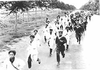 救灾部队撤离灾区时,灾区人民夹道欢送子弟兵