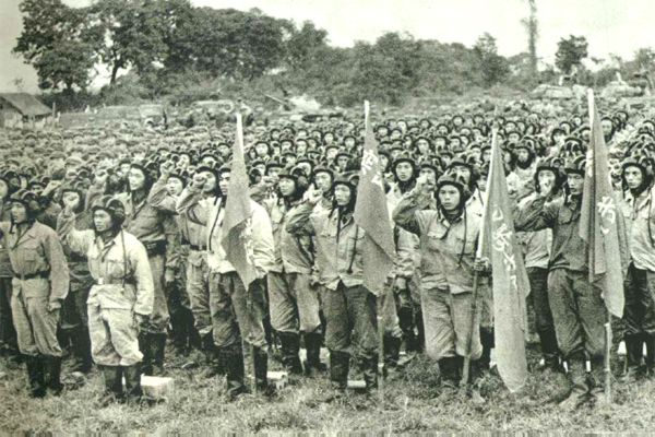 解放军某部参战部队出征前的誓师大会