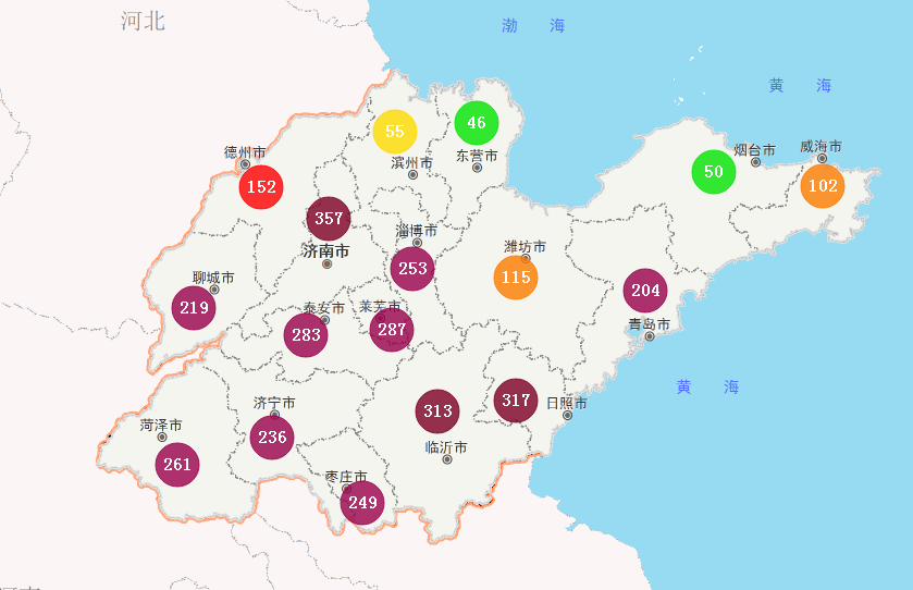 此外,淄博、莱芜、泰安、聊城、菏泽、济宁、枣庄、青岛8市空气质量为严重污染水平,德州为中度污染,潍坊、威海为轻度污染,滨州良好,东营、烟台两市空气质量为优。为此,山东省气象台继续发布霾橙色预警信号:目前,鲁西北的西部、鲁中和鲁南的大部地区有重度以上霾天气,预计今天白天上述地区重度以上霾天气仍将持续。