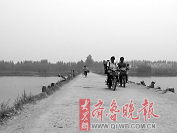 8月22日,记者采访时发现,由于年久失修,桥两边的护栏已所剩无几(下图),而且多个桥墩出现裂痕。就在20日下午,一位老人就因躲避车辆不幸掉到河里身亡,真不知道这座桥还能坚持多久。(张宏磊 高建璋)